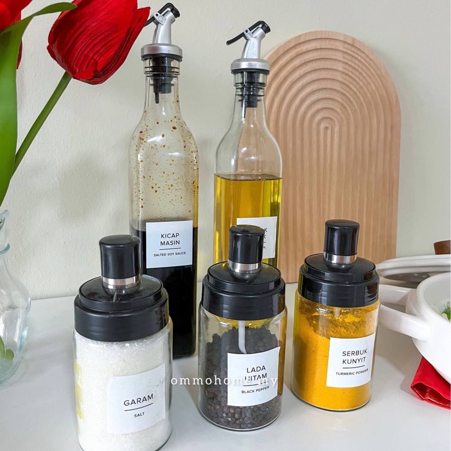 طقم زياتة مطبخ 5 قطع يحتوى على زجاجتين للزيت و3 برطمانات للتوابل